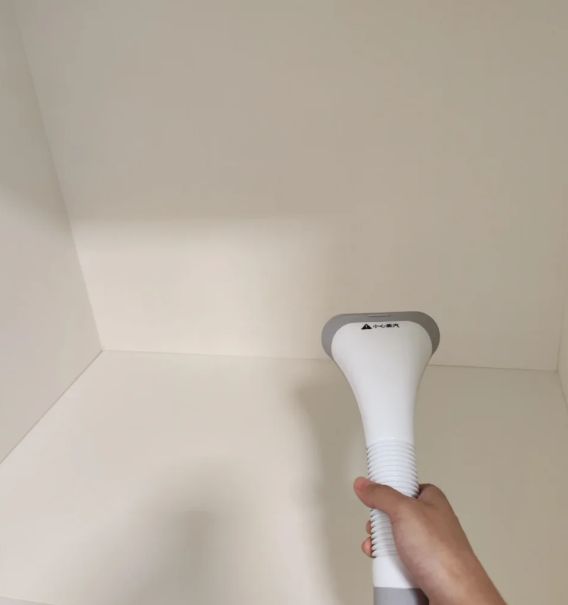 把蒸汽口对着家具,跟熨衣服差不多,就是为了让蒸汽喷洒在家具表面,让家具微微湿润即可,这样就可以快速除醛了。